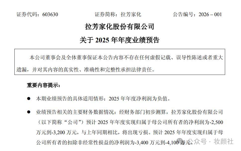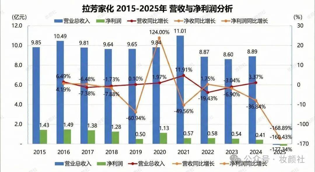 2025年,拉芳家化的财务表现面临较大挑战,营收与利润均出现明显波动,经营层面承受一定压力。