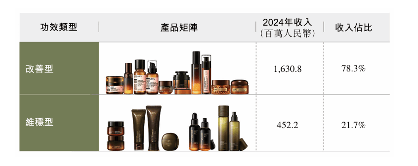 2024年精华水与霜类产品收入占比合计达67.9%,成为营收核心支柱;改善型护肤品总体贡献了78.3%的收入。